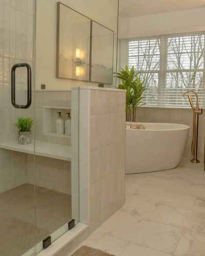 Complete bathroom renovations including showers, tile floors, and custom finishes.
